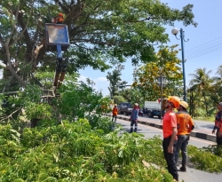 Di Bawah Terik Mentari, Tim BPBD Maros Pangkas Pohon Rawan Tumbang