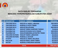 Banyak Masjid dan Mushola di Kabupaten Agam Rusak Parah Akibat Bencana Hidrometeorologi
