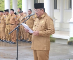 Bupati Anwar Sadat Gelar Apel Gabungan Serta Halal Bihalal Di Halaman Kantor Bupati Tanjab Barat